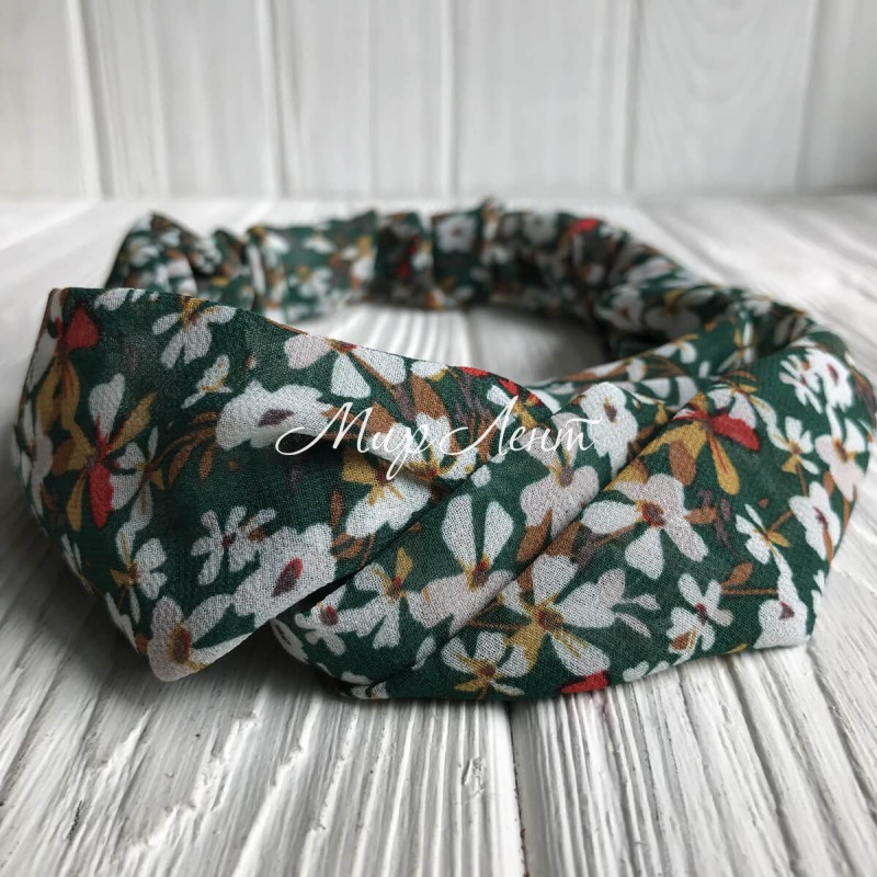 Пов'язка-обкладинка шифон у квіточку, 6 см, темно-зелений, шт.