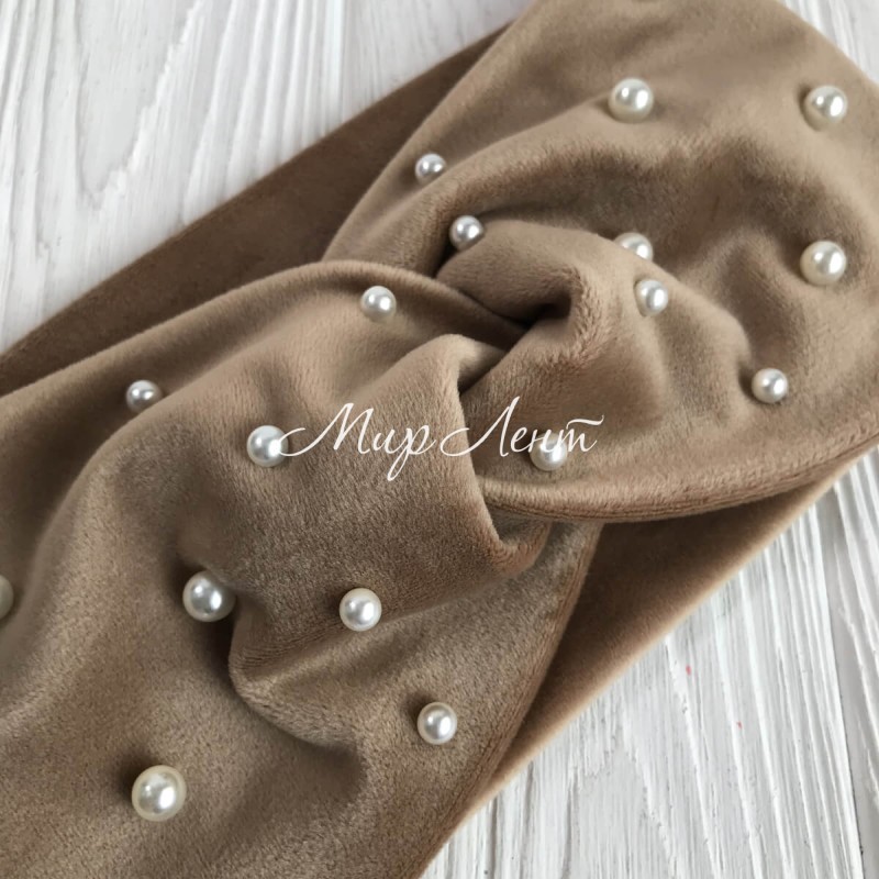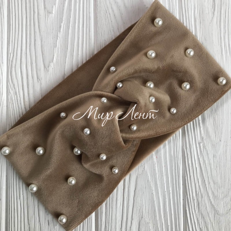 Пов'язка спорт велюр із перлами, 11 см, карамельний, шт.