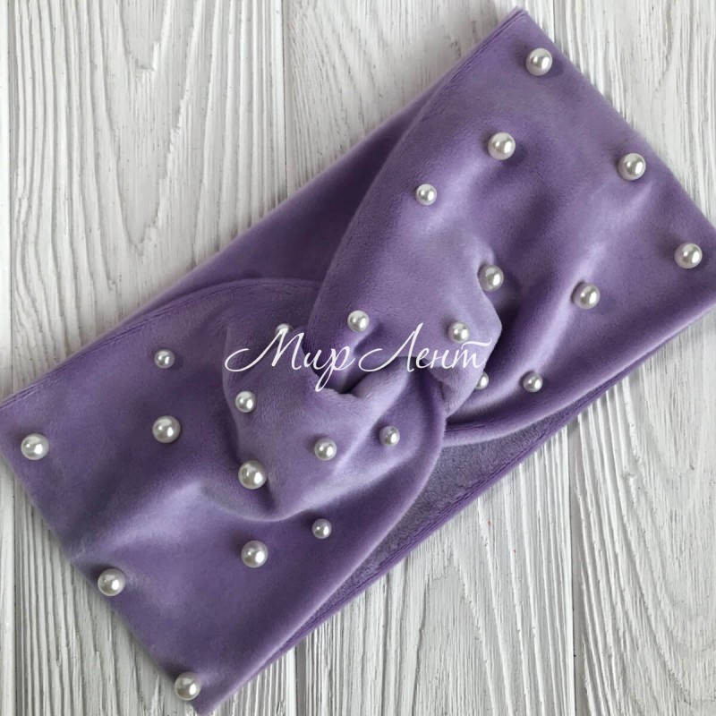 Пов'язка спорт велюр з перлами, 11 см, фіолетовий, шт.