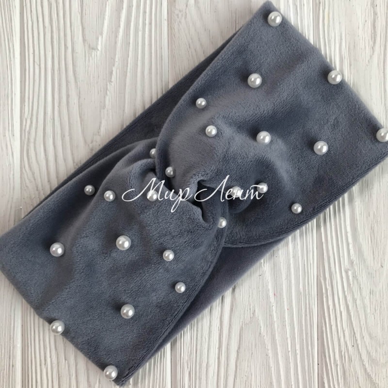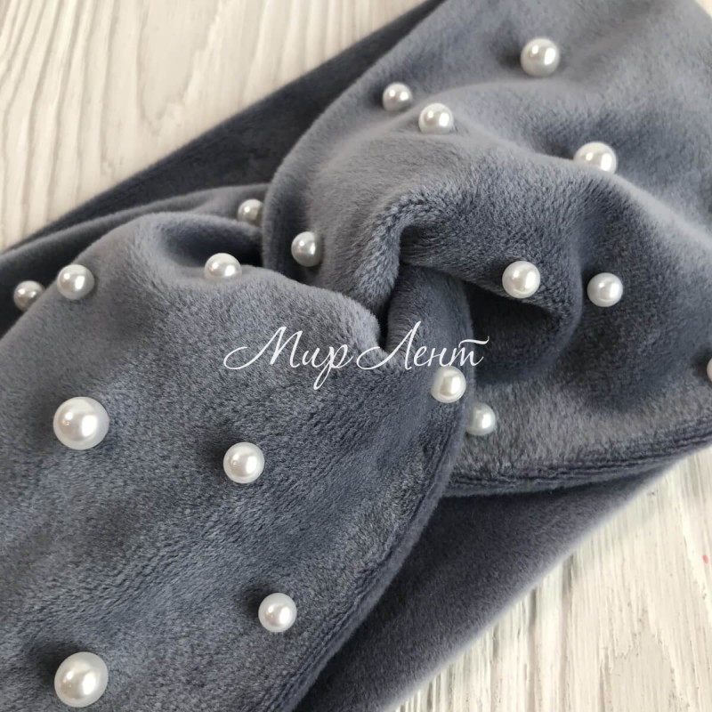 Пов'язка спорт велюр із перлами, 11 см, сірий, шт.