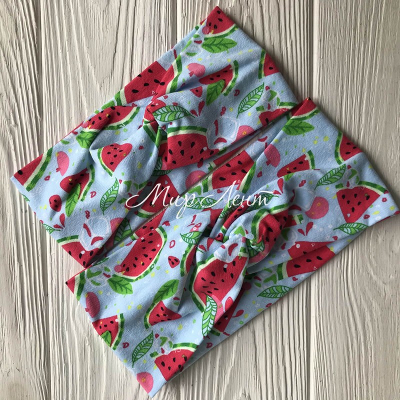 Пов'язка дитяча стрейч кулір, 8 см, світло-блакитний з кавунами, шт.