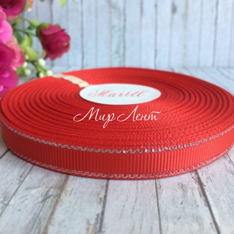 Репс 0,9 см люрекс (срібло), червоний, рулон 23 м