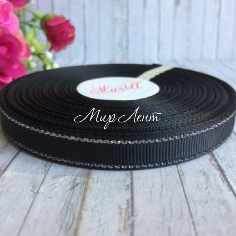 Репс 0,9 см люрекс (срібло), чорний, рулон 23 м