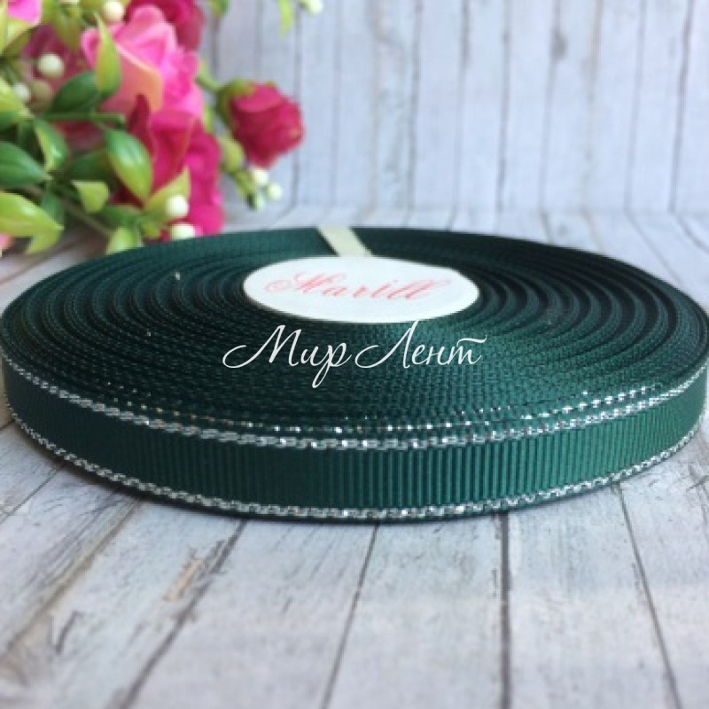 Репс 0,9 см люрекс (срібло), пляшковий, рулон 23 м