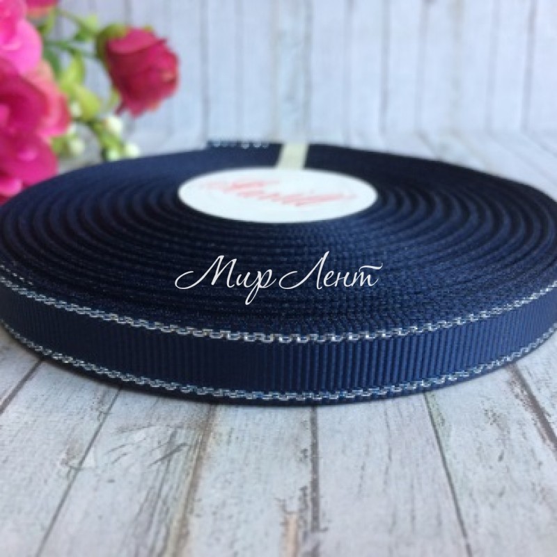 Репс 0,9 см люрекс (срібло), темно-синій, рулон 23 м
