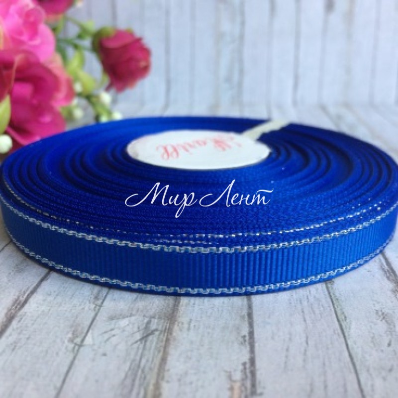 Репс 0,9 см люрекс (срібло), сапфіровий, рулон 23 м