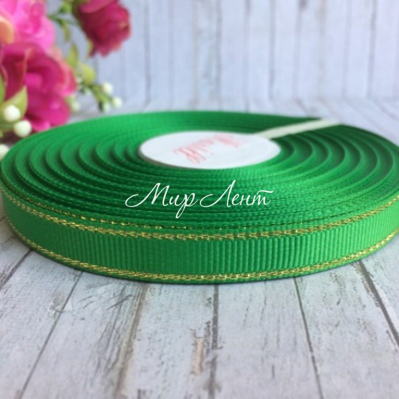 Репс 0,9 см люрекс (золото), зелений, рулон 23 м
