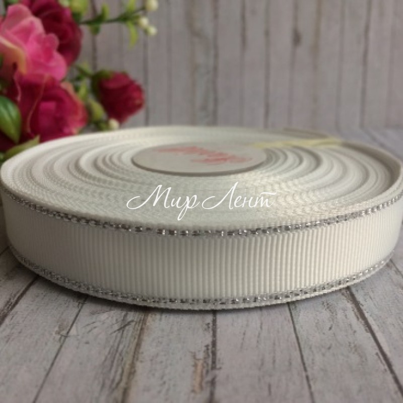 Репс 1,5 см люрекс (срібло), білий, за 1 м