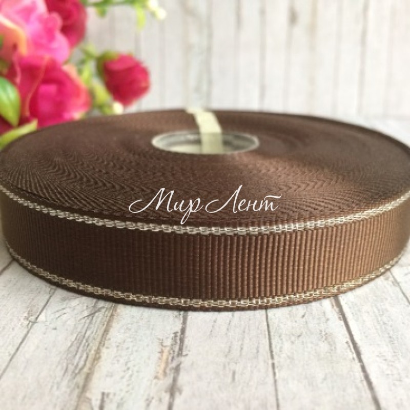 Репс 1,5 см люрекс (срібло), коричневий, за 1 м