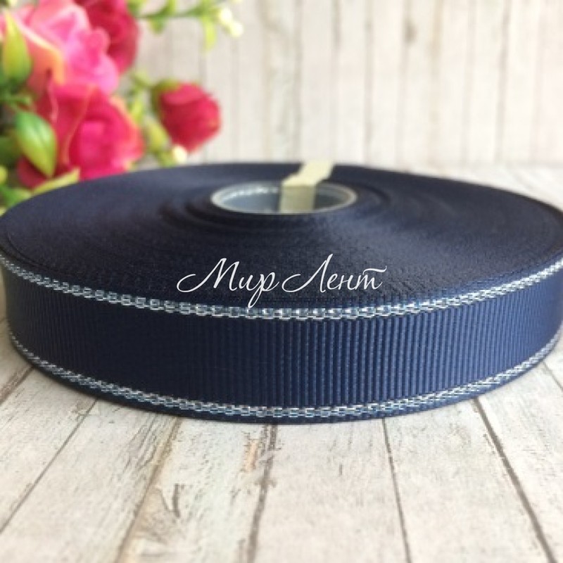 Репс 1,5 см люрекс (срібло), сапфіровий, за 1 м