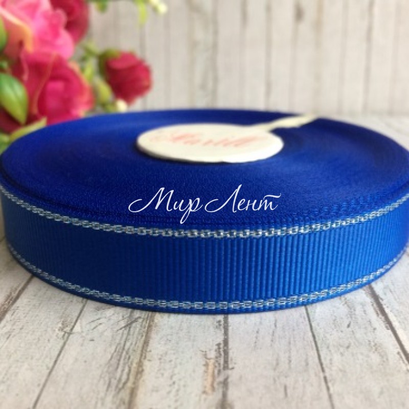 Репс 1,5 см люрекс (срібло), темно-синій, за 1 м