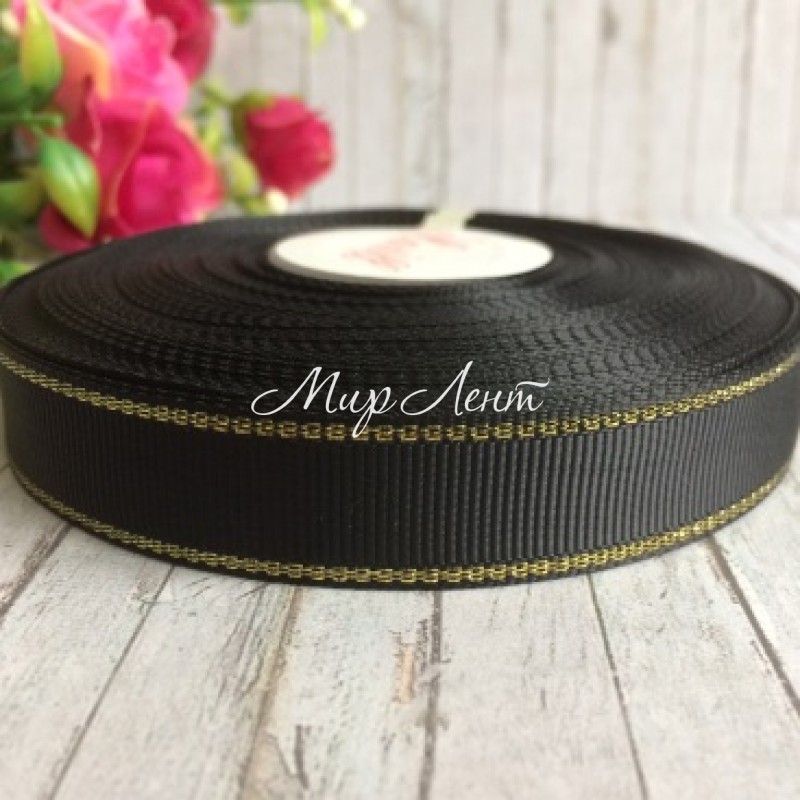 Репс 1,5 см люрекс (золото), чорний, за 1 м