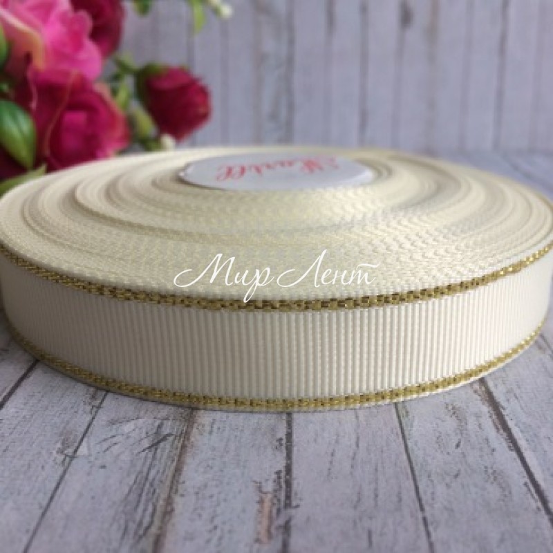 Репс 1,5 см люрекс (золото), молочний, за 1 м