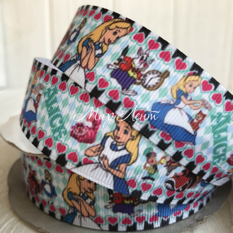 Репс 2,5 см, Аліса в країні чудес, білий, метр