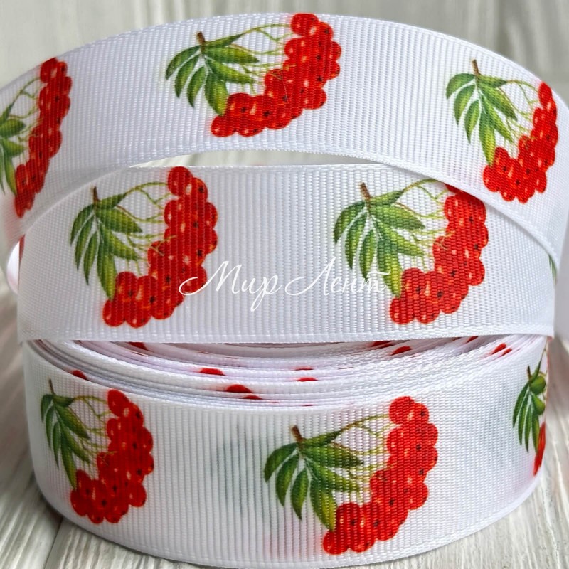 Репс 2,5 см, червона калина, на білому фоні, метр