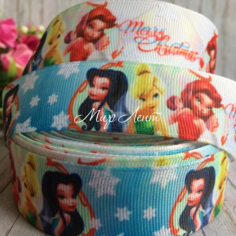 Репс 2,5 см, Феї, біло-блакитний зі сніжинками, 1 м