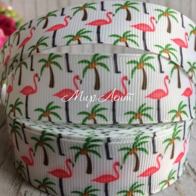 Репс 2,5 см, фламінго-пальма, білий, 1 м