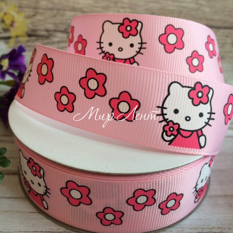 - Модель: Репс 2,5 см, Китти с цветочками, светло-розовый