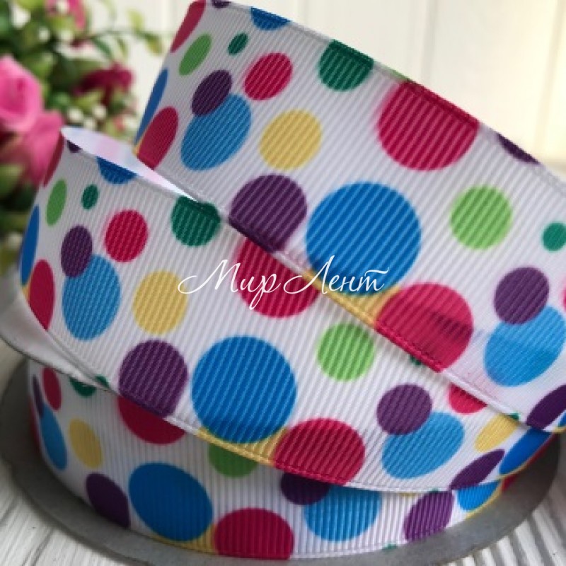 Репс 2,5 см, великий різнокольоровий горох на білому.