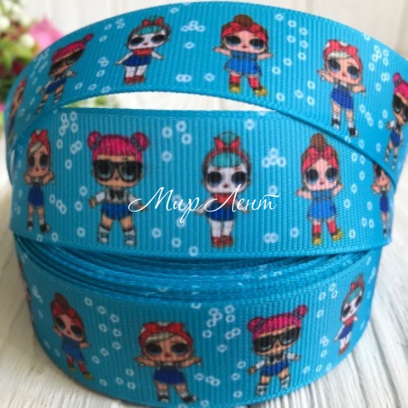 Репс 2,5 см Lol, бірюзовий з бульбашками, метр