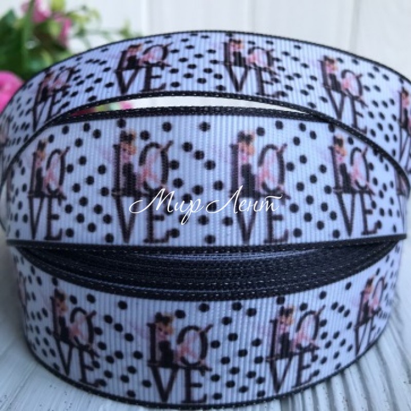 Репс 2,5 см, Love на біло-чорному