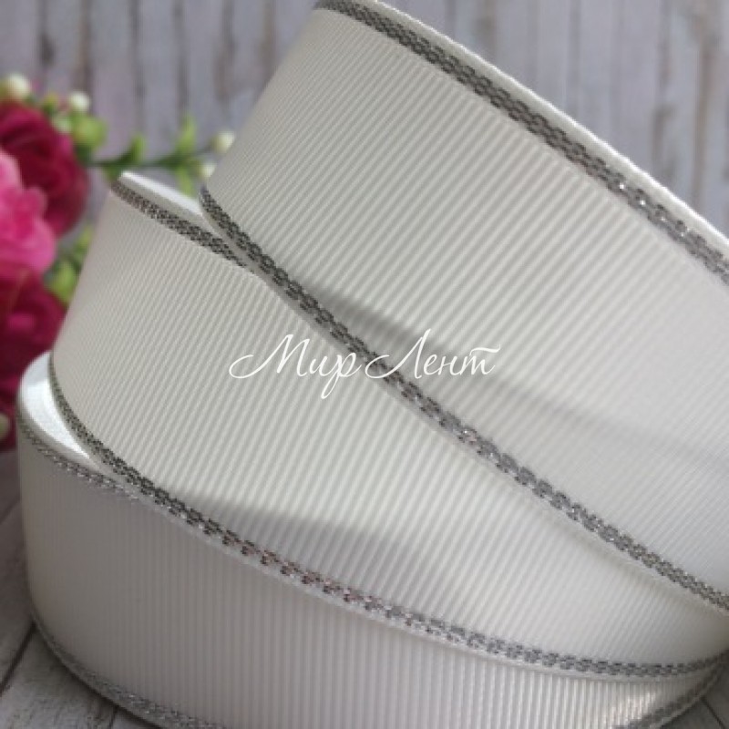Репс 2,5 см люрекс (срібло), білий, за 1 м
