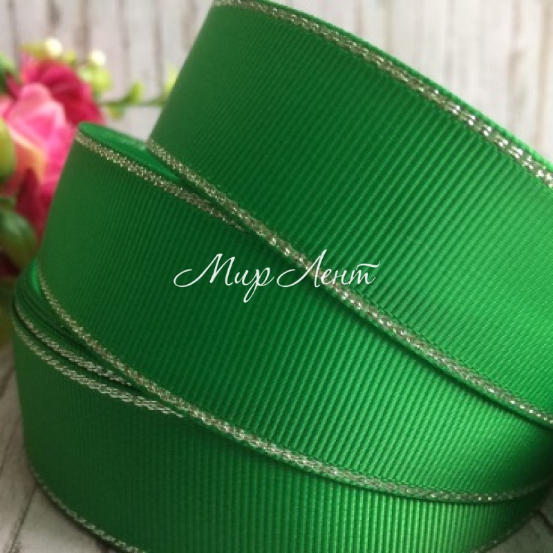 Репс 2,5 см люрекс (срібло), зелений, за 1 м