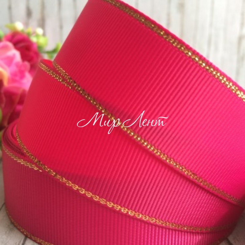 Репс 2,5 см люрекс (золото), малиновий, за 1 м