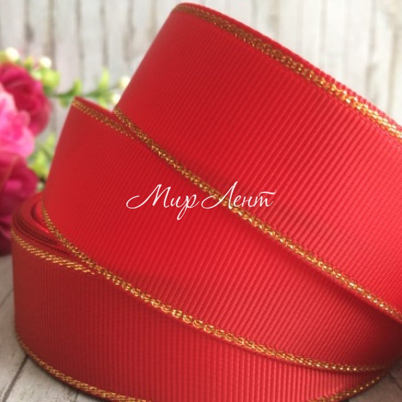 Репс 2,5 см люрекс (золото), червоний, за 1 м
