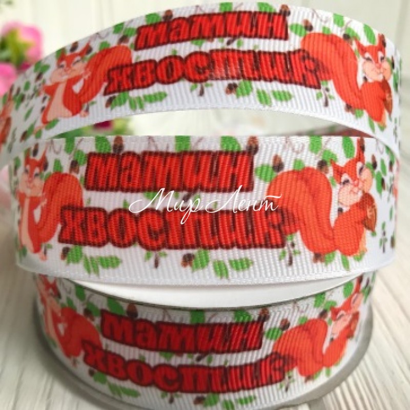 Репс 2,5 см, мамин хвостик, білий з помаранчевим