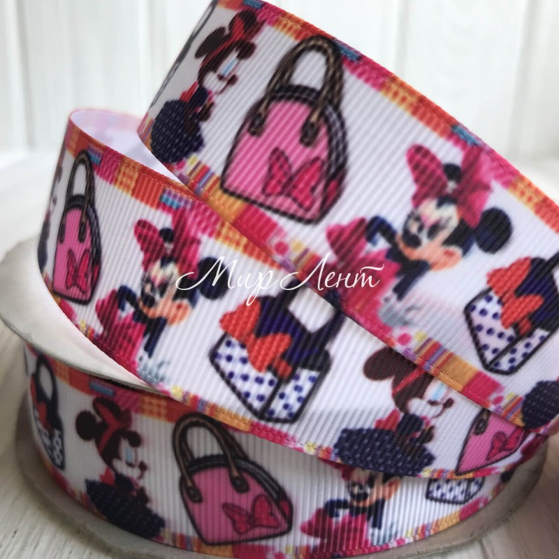 Репс 2,5 см, Шопкінс яблуко-полуничка, білий, метр