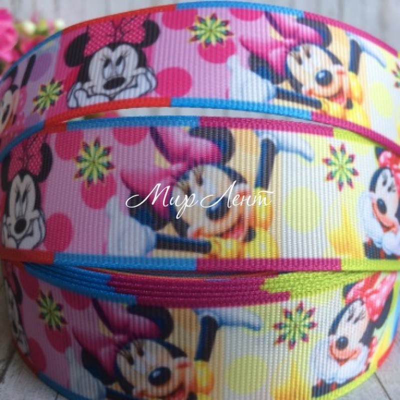 Репс 2,5 см, Міккі та Мінні, жовто-зелений, 1 м