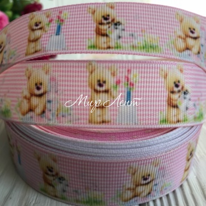Репс 2,5 см, мамине щастя на біло-рожевому