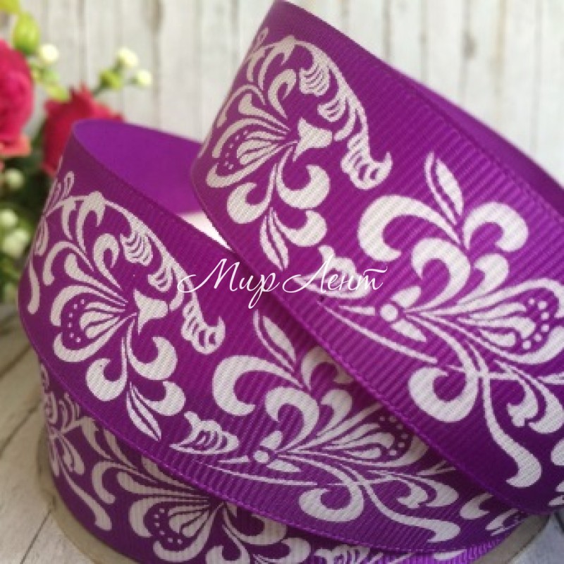 Репс 2,5 см, орнамент, темно-фиолетовый