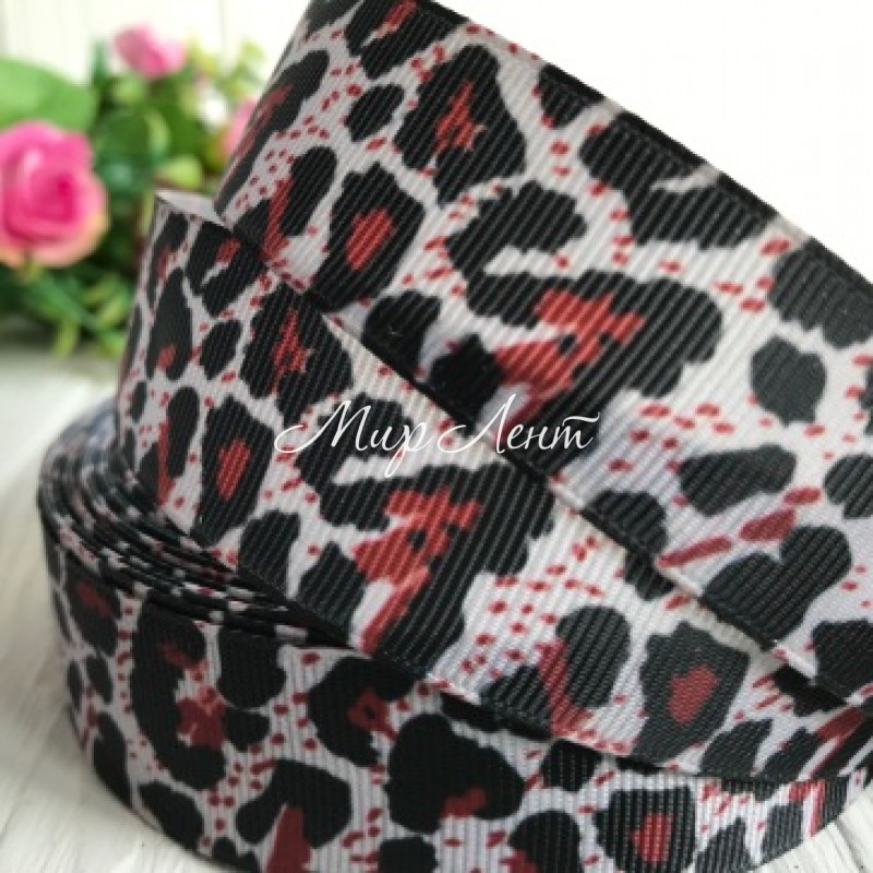 Репс 2,5 см, сірий леопард, метр