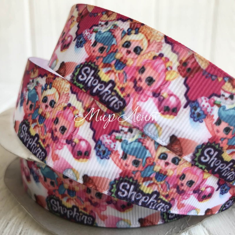 Репс 2,5 см, Шопкінс дівчинки, білий, метр