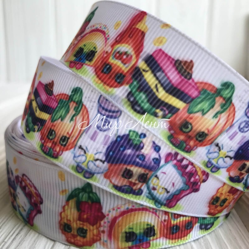 Репс 2,5 см, Шопкінс яблуко-полуничка, білий, метр