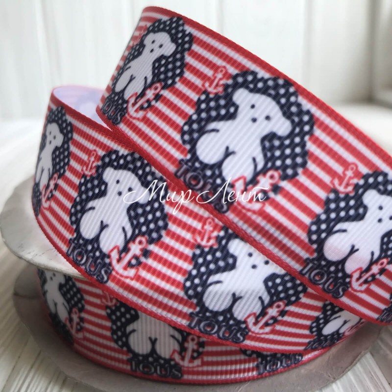 Репс 2,5 см, Tous, синій з червоною смугою, метр