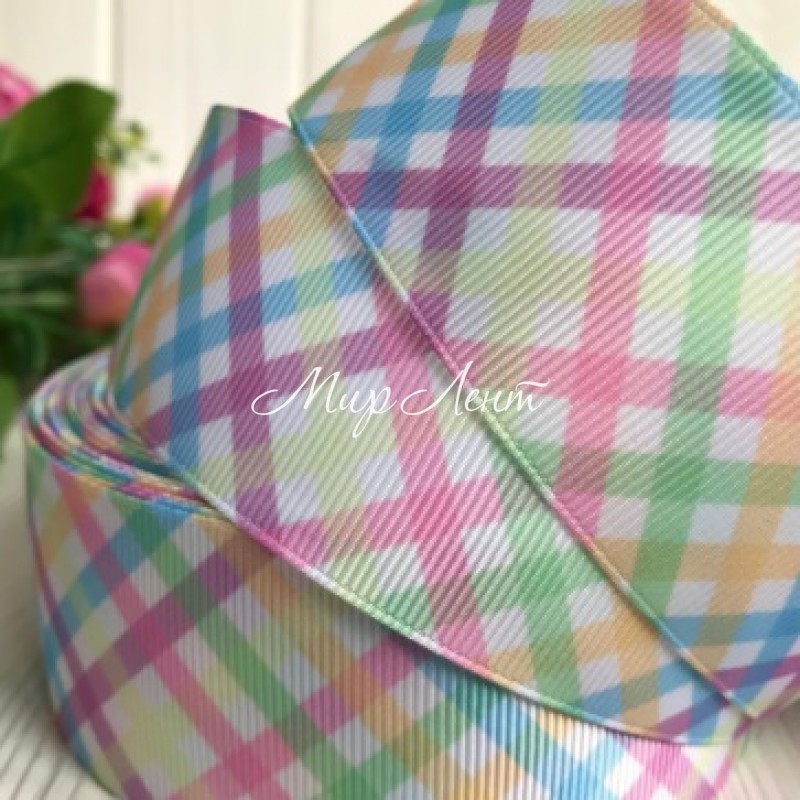 Репс 4 см, діагональна пастельна клітка на білому, м