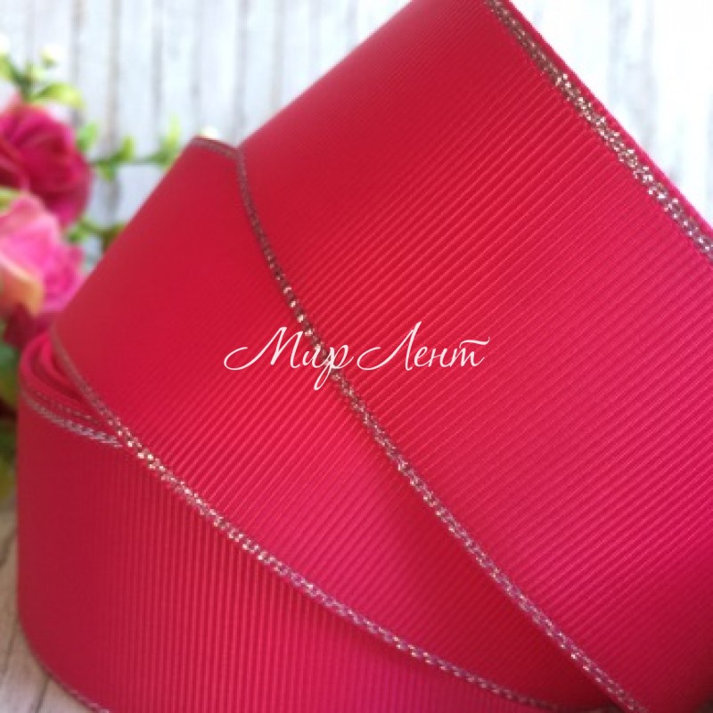 Репс 4 см люрекс (срібло), малиновий, за 1 м