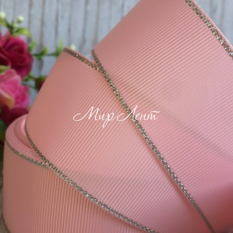 Репс 4 см люрекс (срібло), світло-рожевий, за 1 м