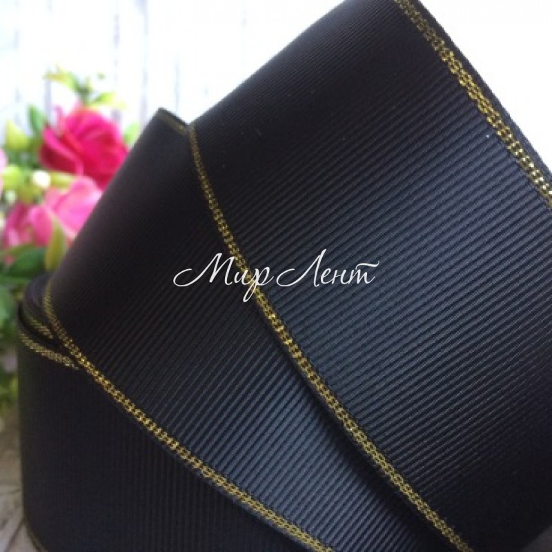 Репс 4 см люрекс (золото), чорний, за 1 м