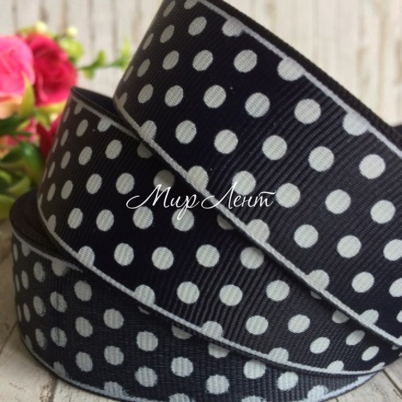 Репс горох/смужка, 2,5 см, сапфірово-білий