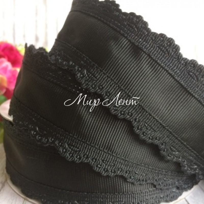 Репс із ажурним кантом, 3,5 см, темно-фіолетовий