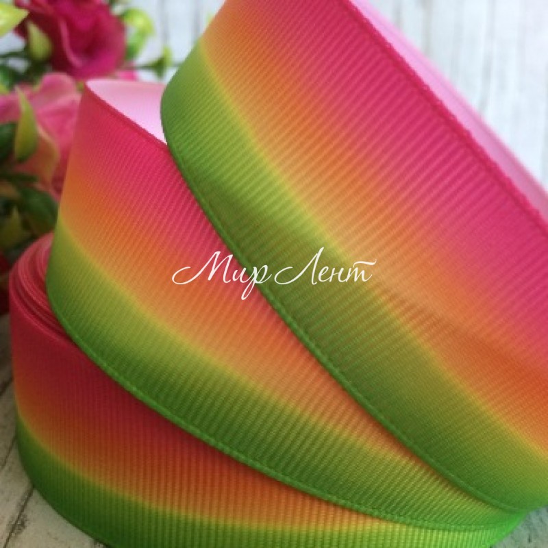 Репс Омбре, 2,5 см, малиново-оранжево-жовто-зелений