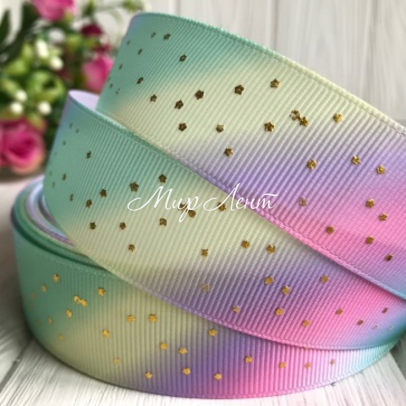 Репс омбре із зірочками, 2,5 см, пастельна діагональ