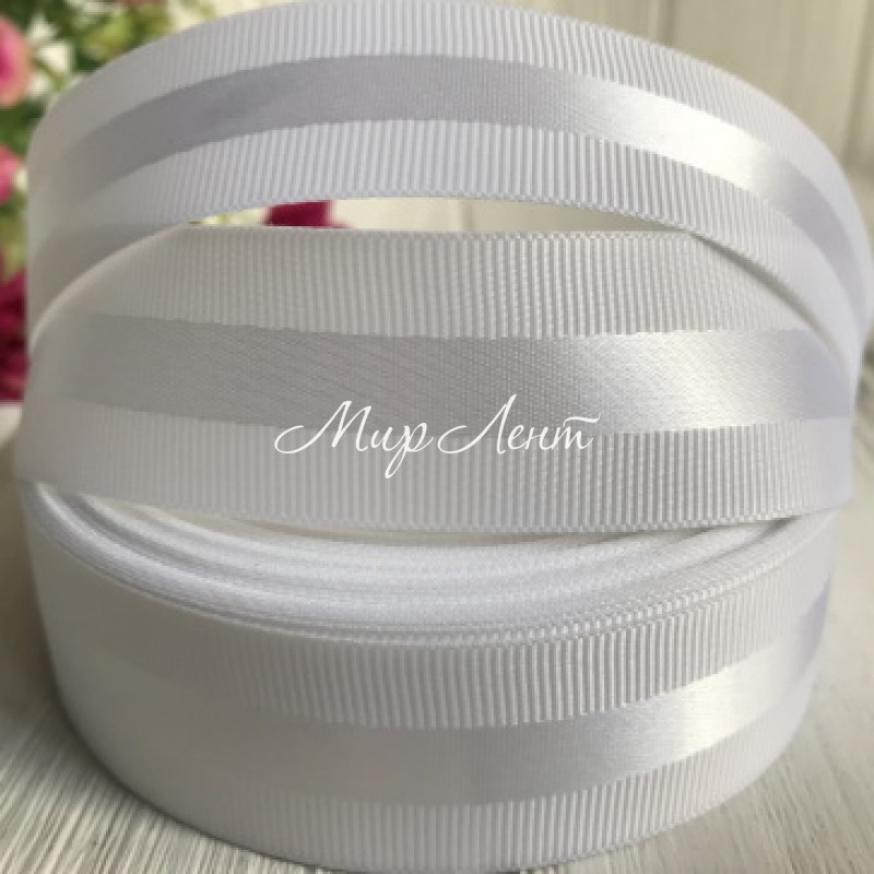 Репс з атласною смугою, 2,5 см, білий, метр