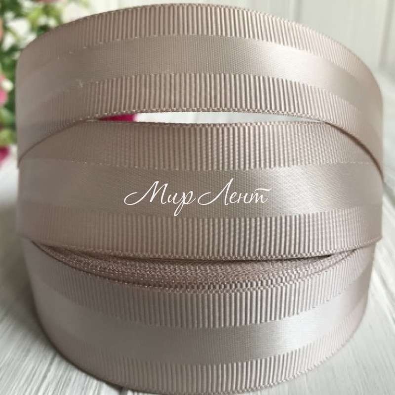 Репс з атласною смугою, 2,5 см, бежевий, метр