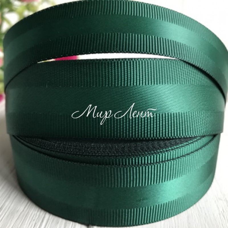 Репс із атласною смугою, 2,5 см, темно-зелений, метр
