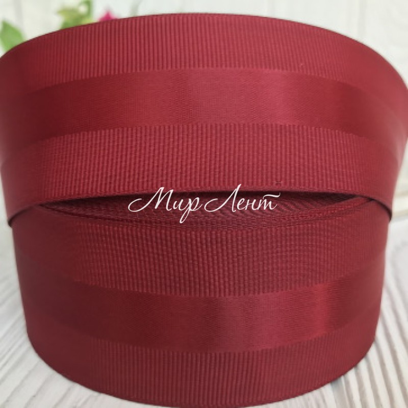 Репс з атласною смугою, 4 см, бургунді, метр